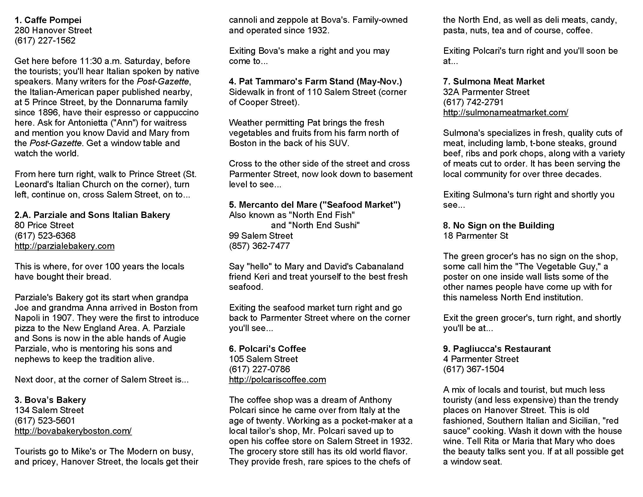 Saturday, starting at 10:00 a.m., we'll gather at Caffe Pompei, 280 Hanover Street, in the North End, Boston's Little Italy, for a guided tour