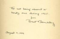 BENCHLEY MEMORABILIABenchley signed many of his books, and even wrote an essay ""Why Does Nobody Collect Me?”–which appeared in Part Eighteen of The Colophon, September, 1934–about his practices in signing dedications in books. The essay is reprinted in Chips off the Old Benchley, 1949. | ||||